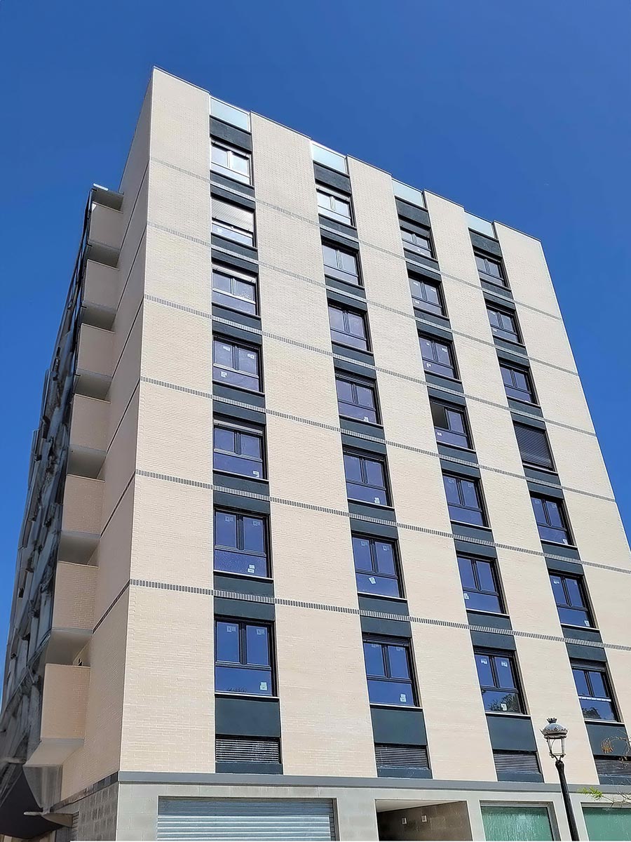 Edificio residencial plurifamiliar compuesto por 21 viviendas en 7 plantas sobre rasante, bajo comercial y garajes en 2 plantas de sótano.