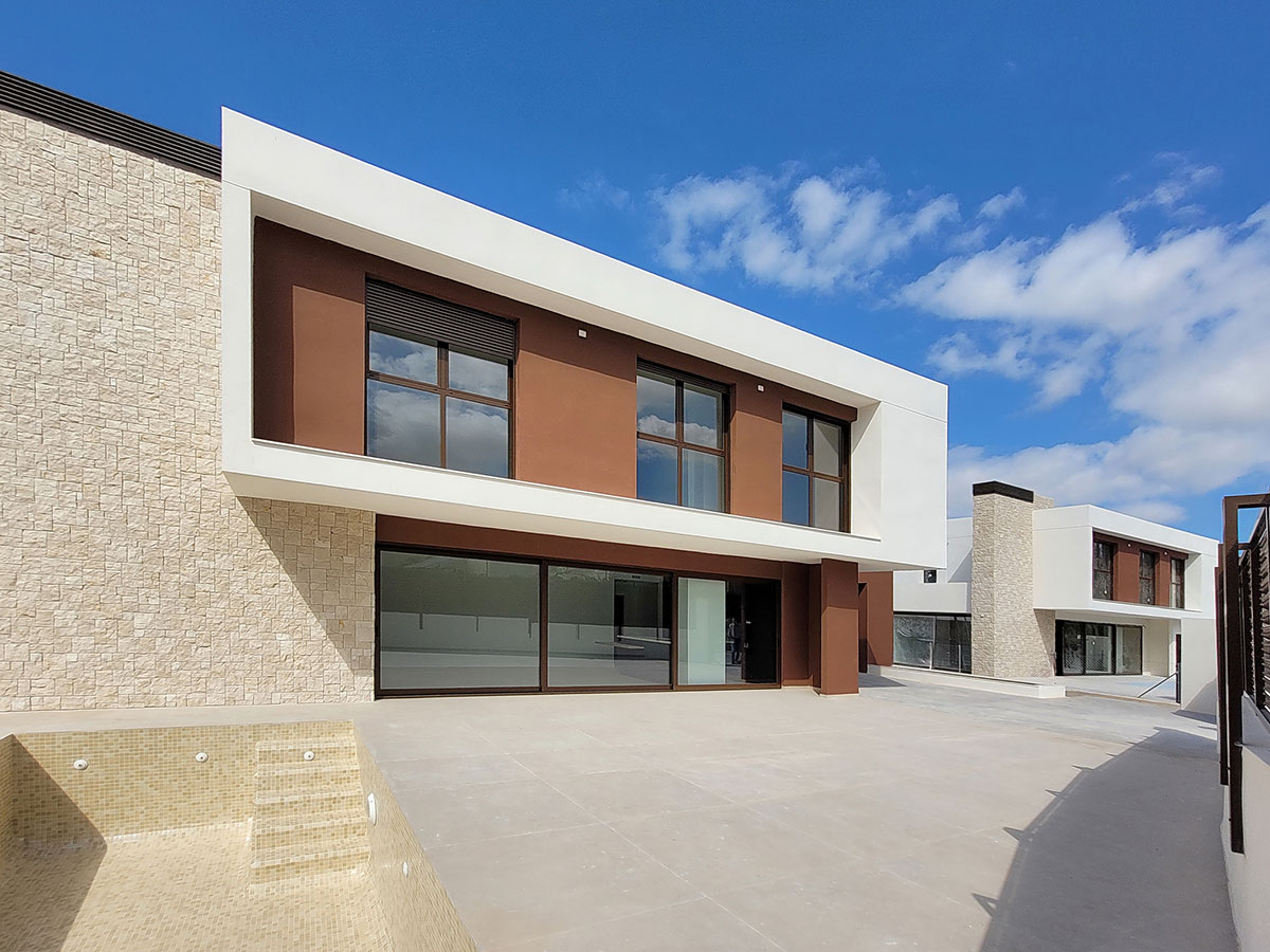 Conjunto residencial de 7 viviendas unifamiliares independientes, en planta baja más 1 planta sobre rasante, con amplios salones, comedor y cocina integrados, lavadero, 4 dormitorios y 4 baños, vestidor, con jardín propio, parking y piscina independientes.