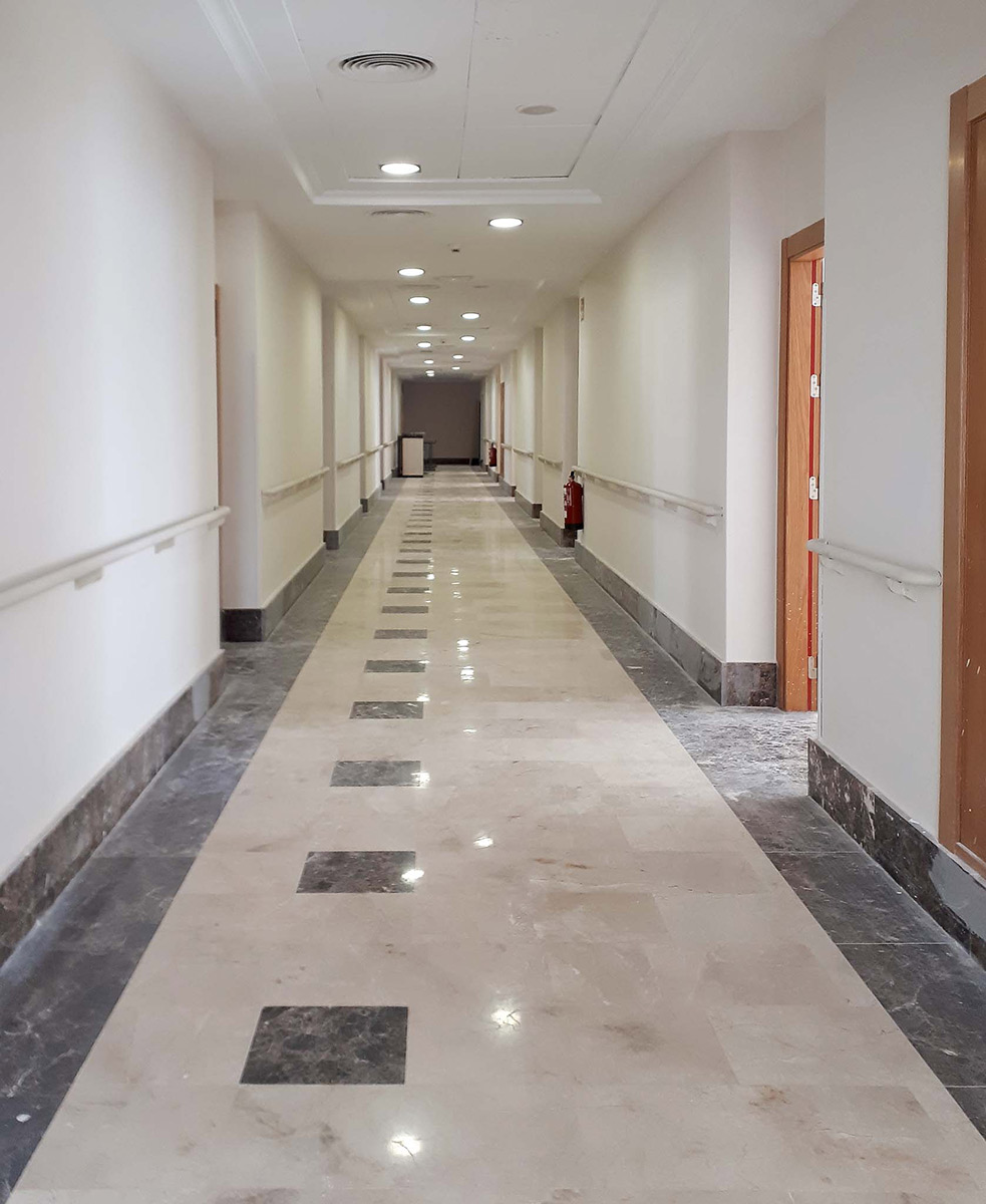 Reforma integral y puesta en marcha de un gran edificio existente para adaptarlo como centro especializado para mayores, de 216 plazas, en 3 plantas sobre rasante con terraza solárium privativa, 1 planta sótano de aparcamientos, salas, y patios interiores de actividades diversas.